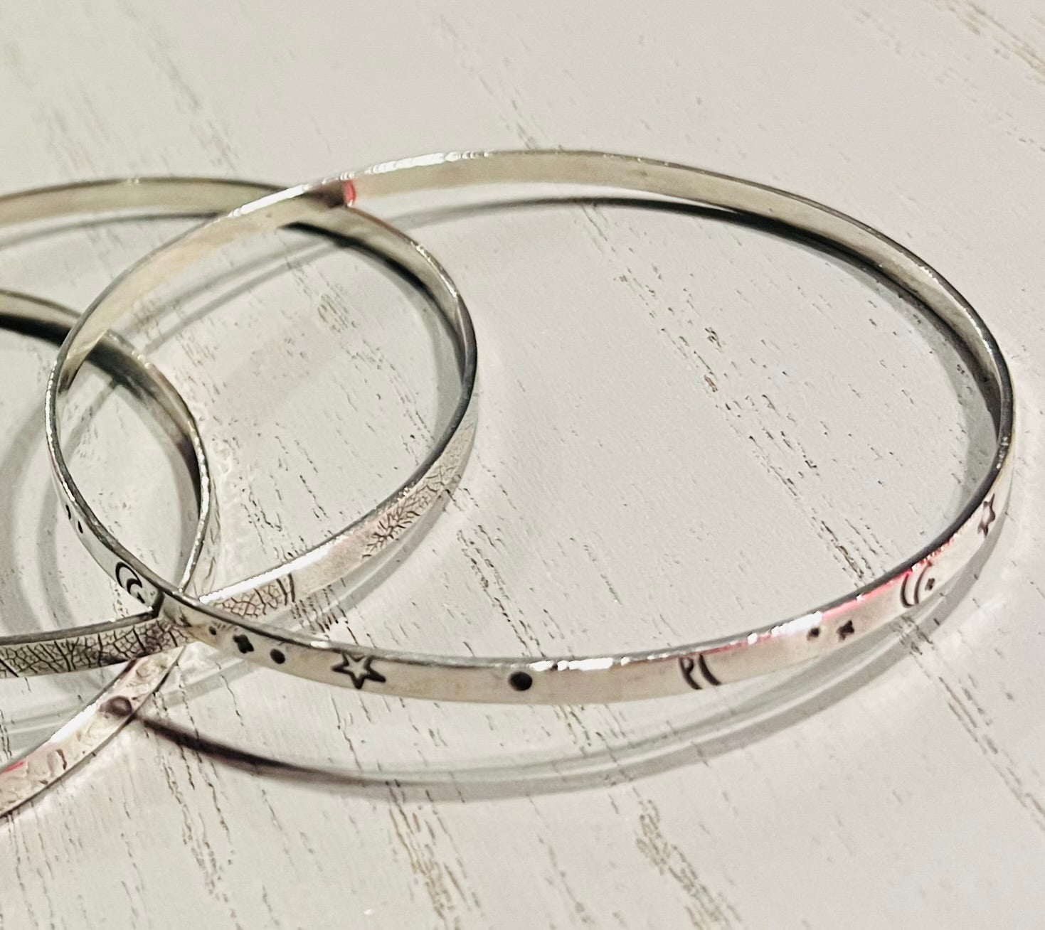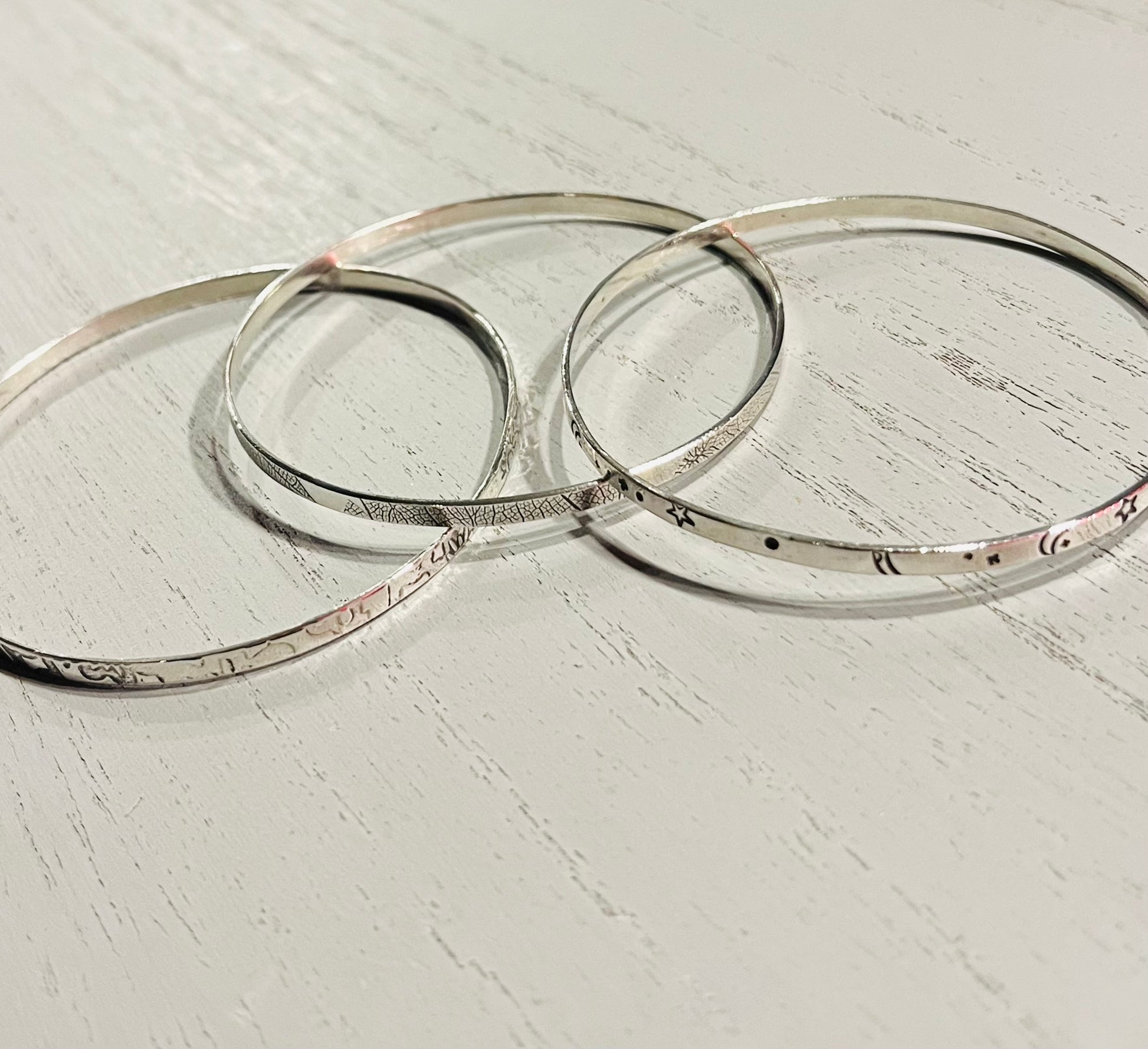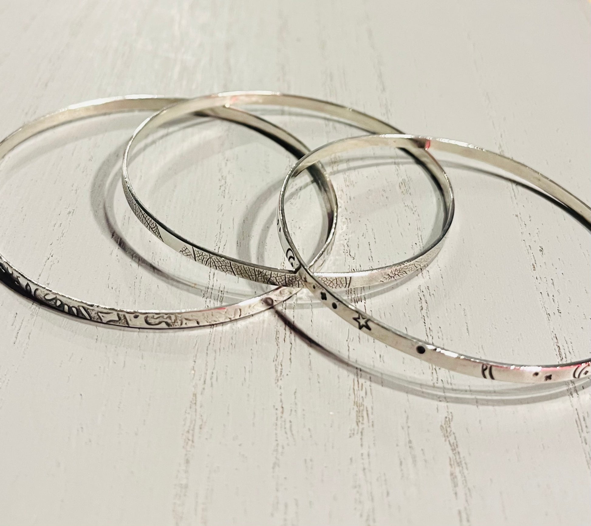 Handmade Silver Starry Night Bangle | Celestial Sterling Silver Jewellery
